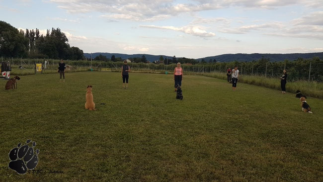 Die Fortsetzung des BH-VT Kurses ist der BHG-1 Kurs. Hier werden die verschiedenen Gangarten mit und ohne Leine geübt, Menschengruppe, ablegen in der Gruppe, hereinrufen und die ersten Übungsansätze mit dem Bringholz geübt.
